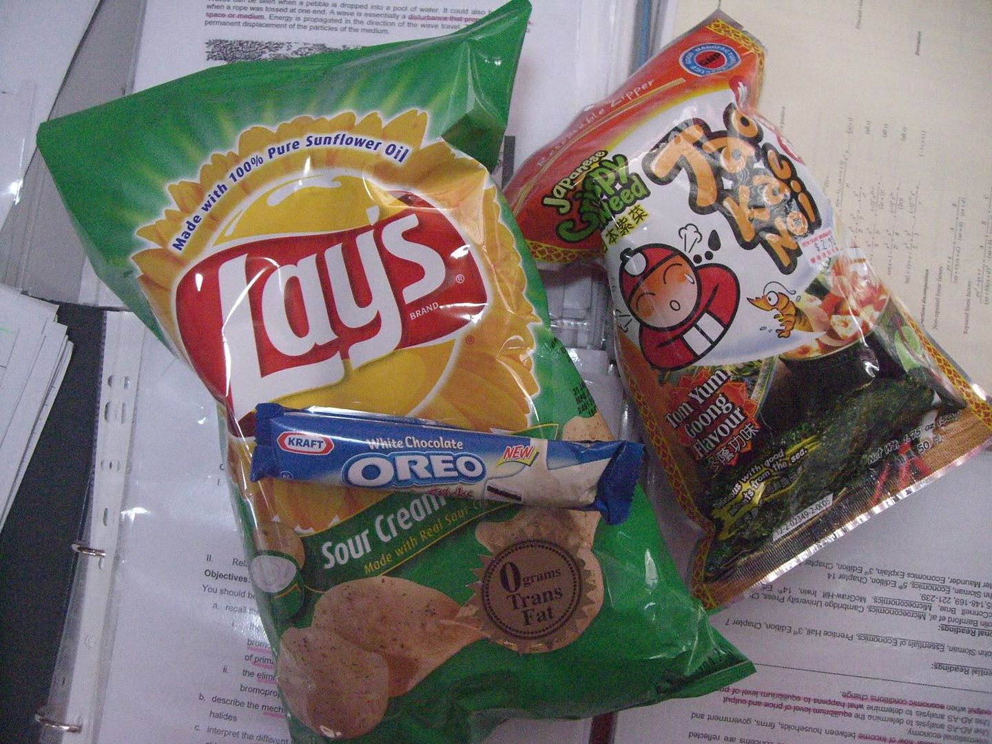 on top of my notes, my companion for the rest of the 2 and a half weeks are LAYS, OREO white chocolate waffer and TAK KAE NOI(tom yam goong flavour is the best according to lois. i had been eating original so far. but well, tom yam is nice(: ).
