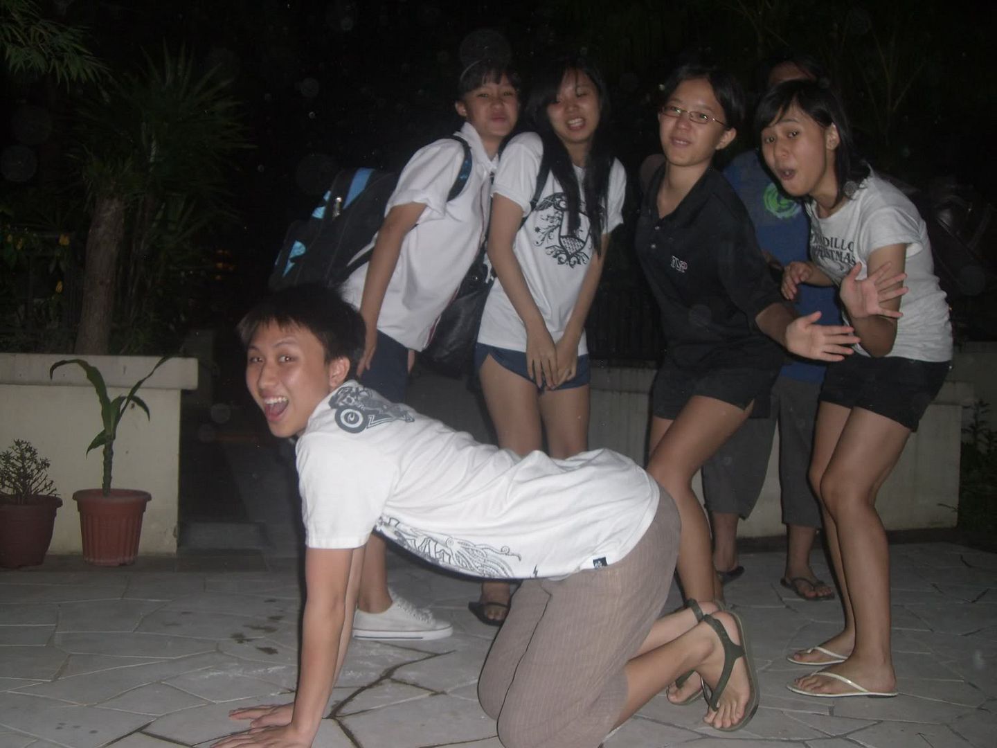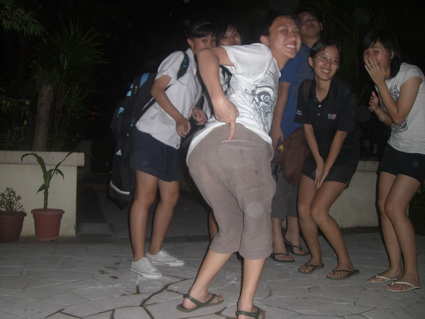so i went to town with limin the day before as a way to distract her. then she was lured to stanven's house where the rest greeted her with a slice of mango cake. haha. then she was, again, cheated to the bbq area whr she had to crack an egg with her head, well of course, we told her tht the egg is a hard-boiled egg. so when she started knockin her head with the egg, changsheng and stanven bombarded her with more eggs. haha. the rest of us, we jus ran away. haha. seein how dirty she was, we didnt carry out the rest of our plan.